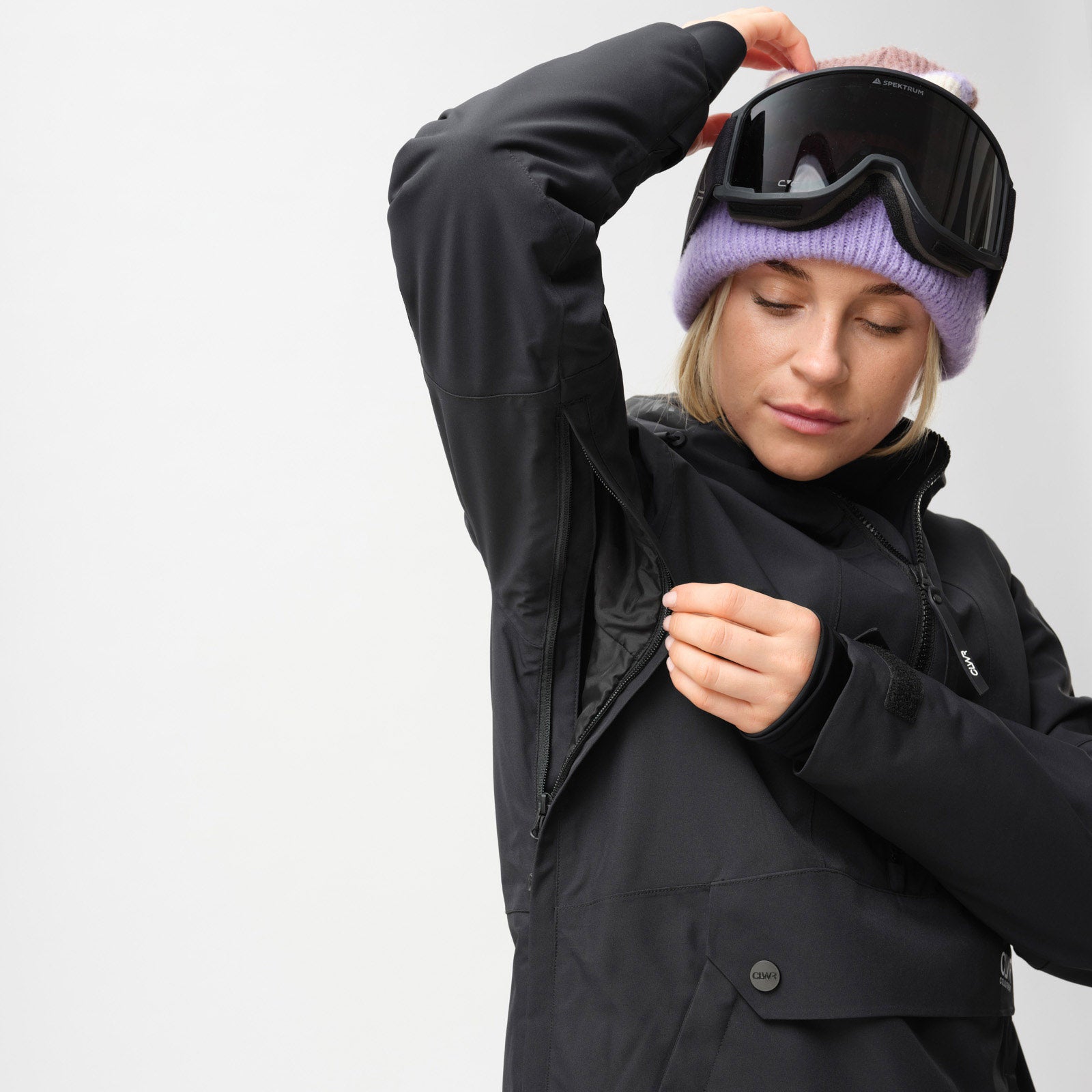 - Venting: Mesh-lined underarm zips