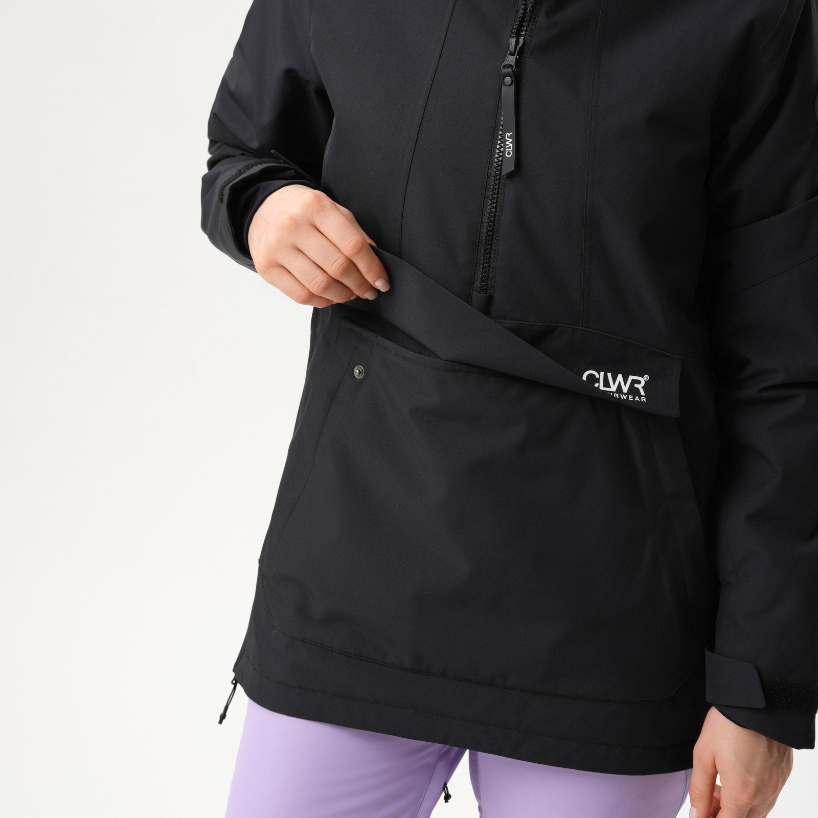 - Pockets: Kangaroo pocket with zippered entries, lift pass pocket