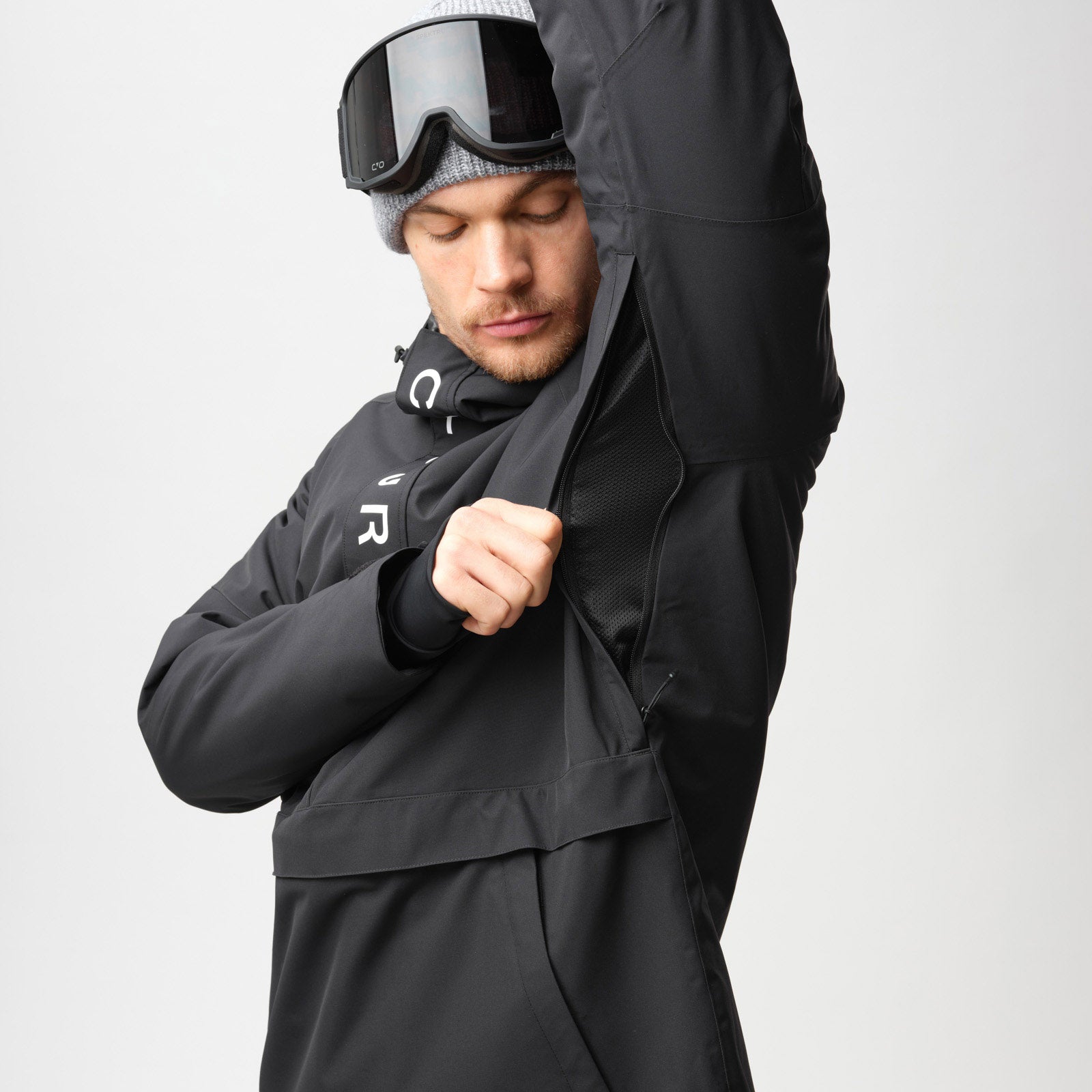 The Men’s Signature Anorak is built for snowboarders and skiers who want clean style with mountain-ready performance. Designed with a relaxed fit and lightly padded for comfort, it delivers full coverage with a no-fuss pullover silhouette. Taped seams, fleece-lined touches, and underarm vents keep things warm and breathable, whether you’re lapping the resort or chasing powder through the trees.