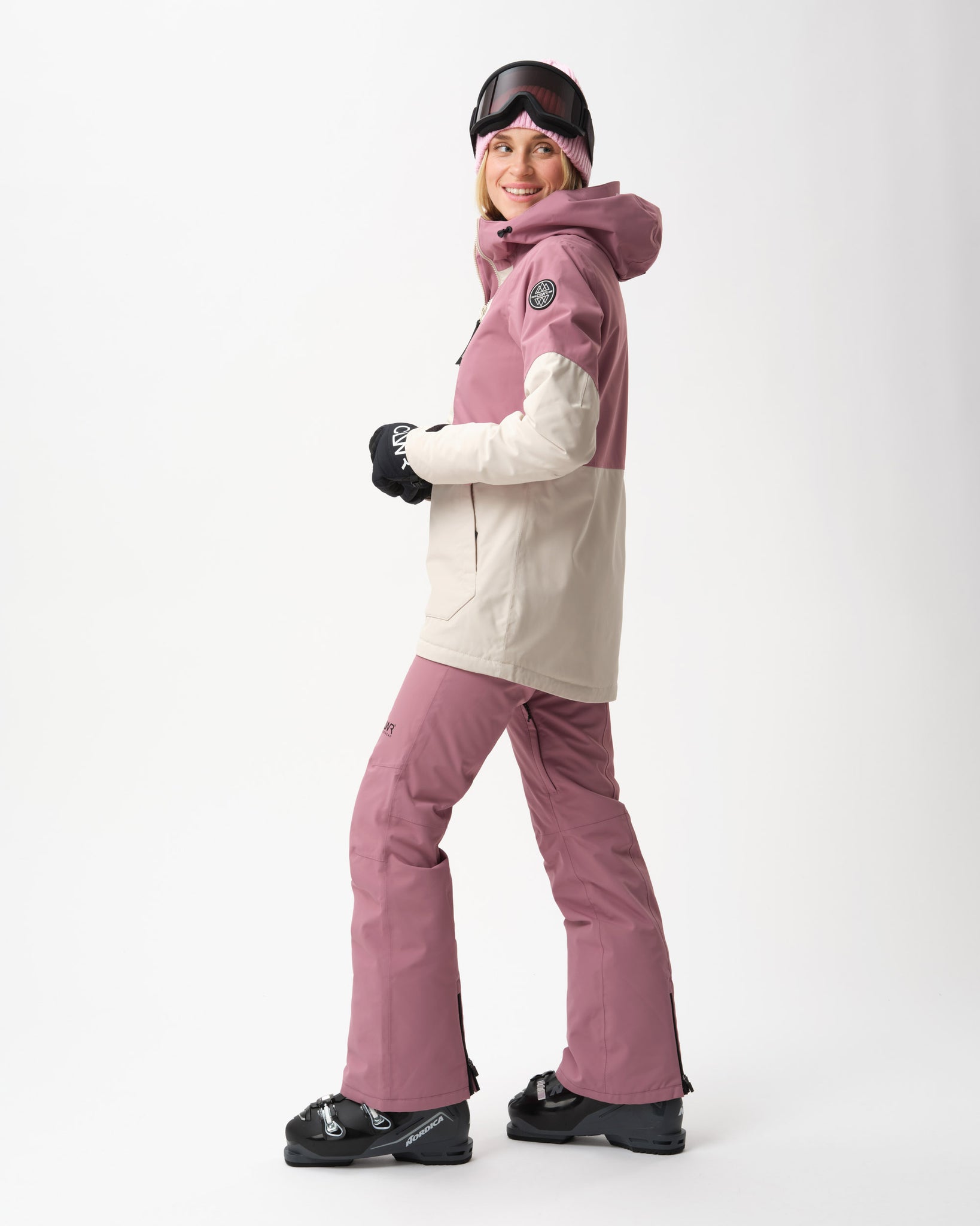 The Women’s Homage Anorak blends mountain function with a clean pullover style made to handle whatever the day throws at you. Whether you're snowboarding through fresh lines or skiing your favorite runs, this lightly padded shell keeps you warm, dry, and moving freely. With a fleece-lined collar, side-entry kangaroo pocket, and fully taped seams, it’s an essential layer for all-mountain comfort and performance, season after season.