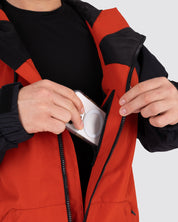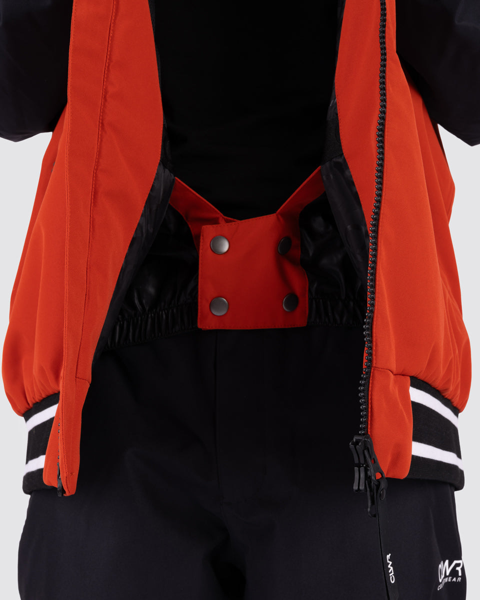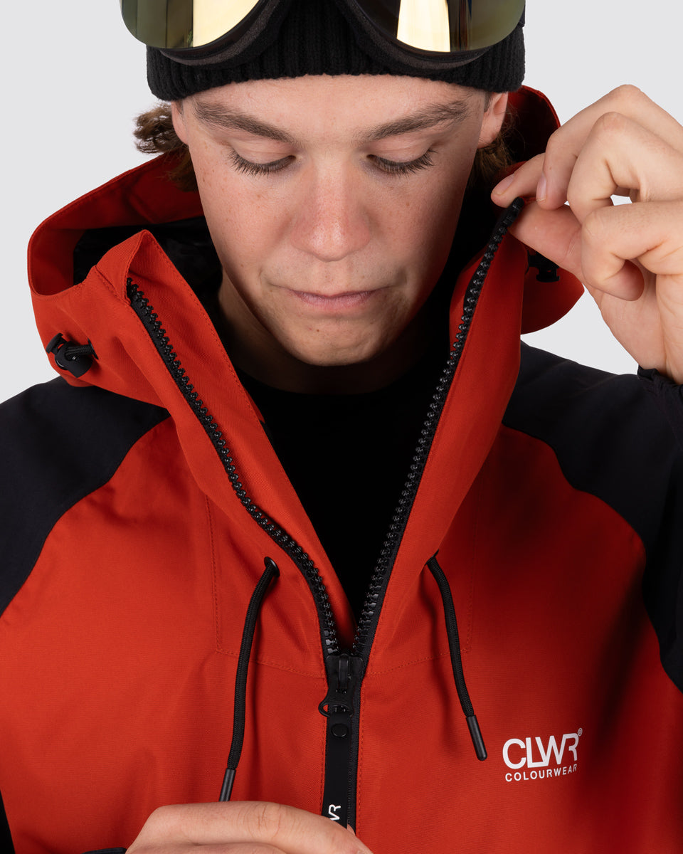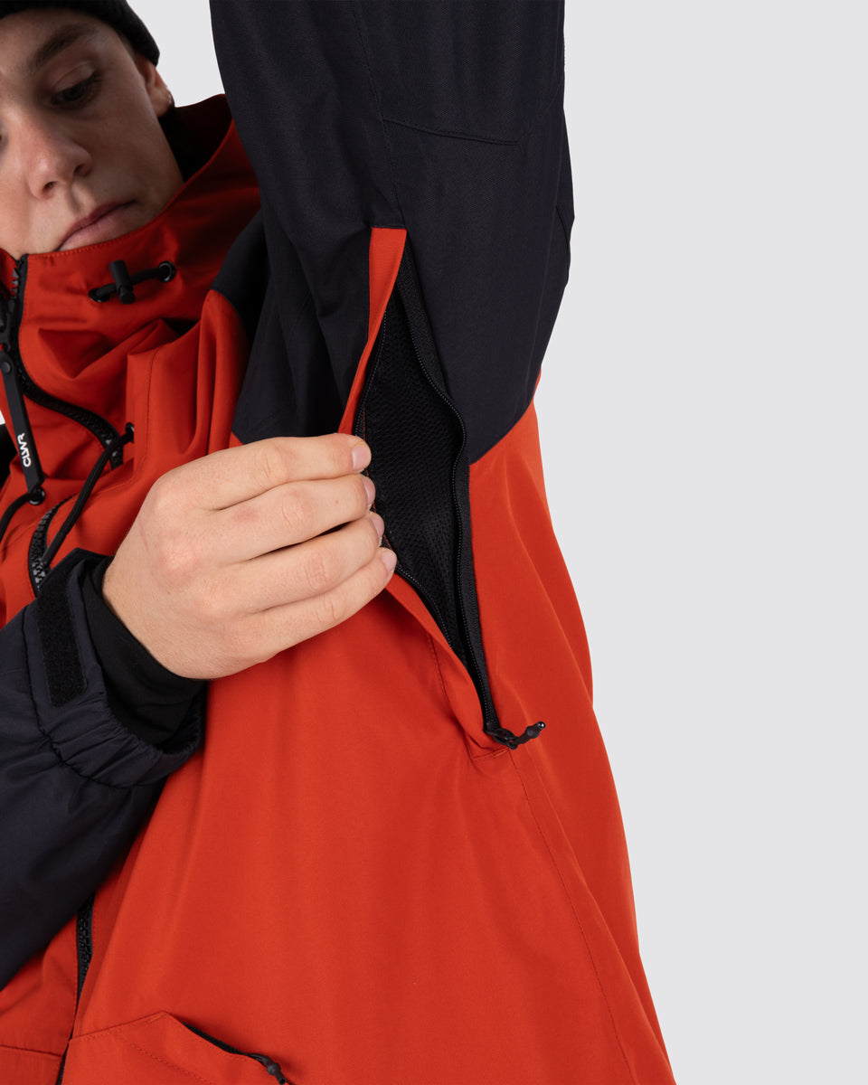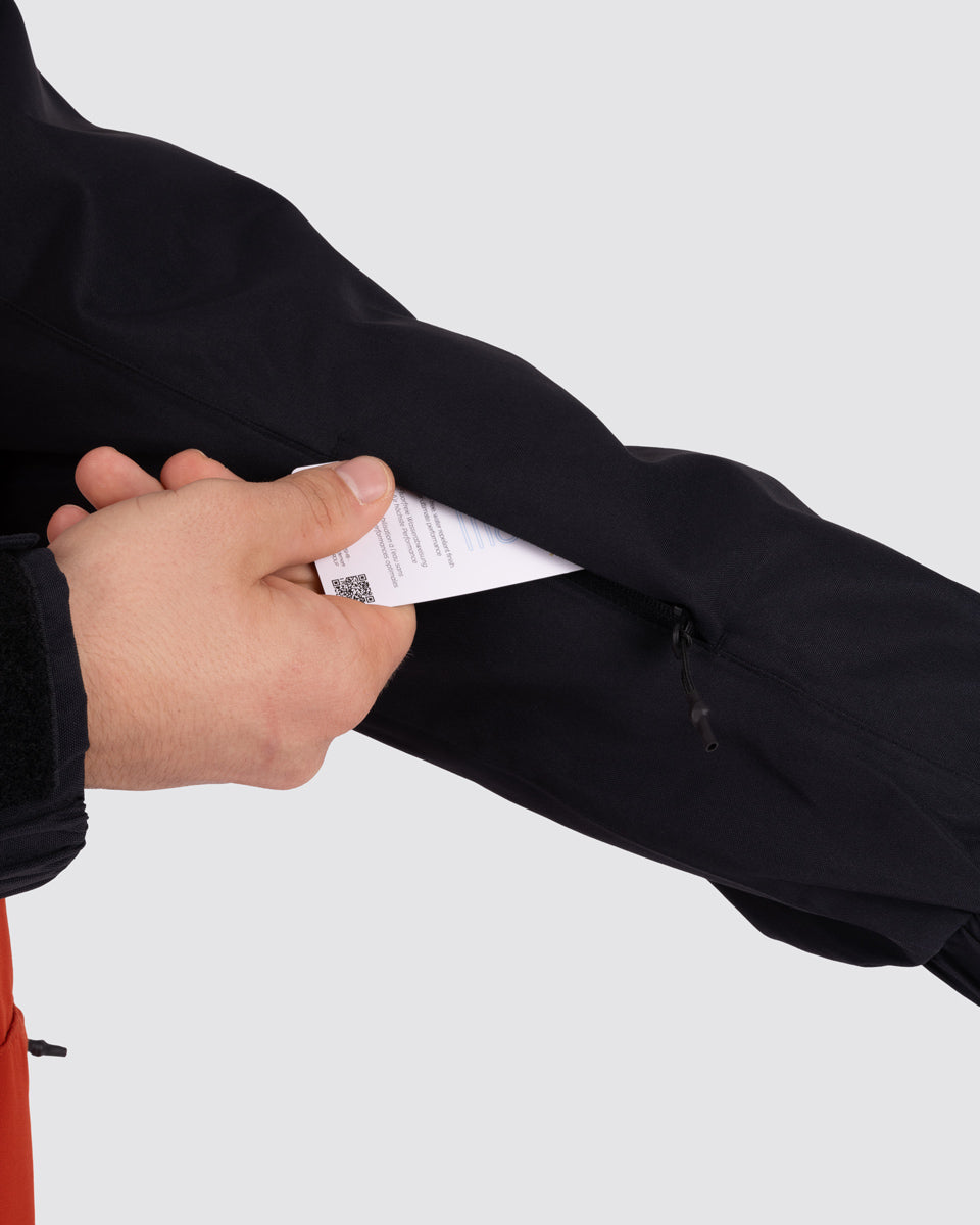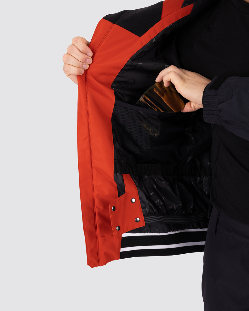 - Egenskaper: Tejpade sömmar, ledade ärmar, fleecefodrad krage och fickor, snökjol, ventilationsöppningar under armarna, justerbara muddar, mudd i nederkant