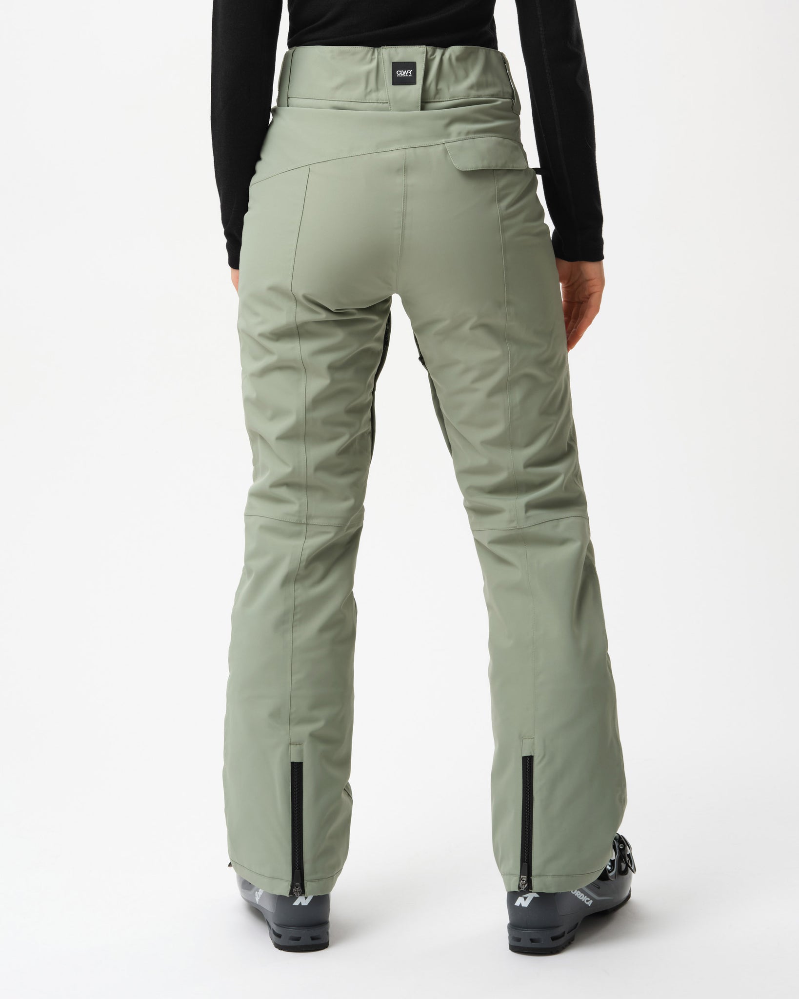 The W Cork Pants är skapade för åkare som vill ha prestanda hela dagen med en elegant och smickrande siluett. Oavsett om du åker skidor i branta pister eller snowboard genom skogspartier, erbjuder dessa byxor väderskydd, smart ventilation och en feminin passform som inte kompromissar med rörligheten. En fleecefodrad midja och ledade knän säkerställer komfort i rörelse — hela dagen, i alla terränger.