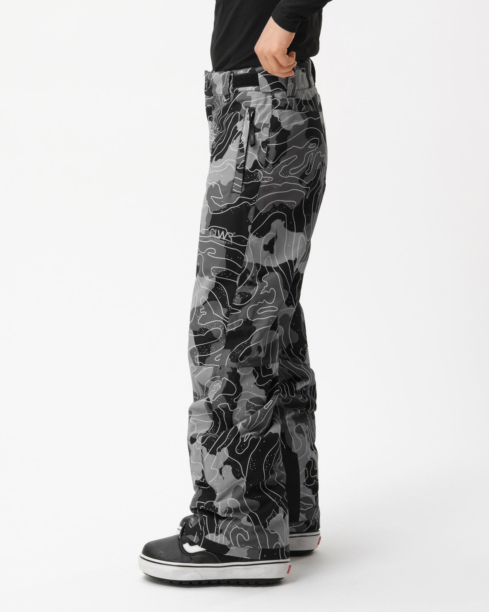- Egenskaper: Förseglade sömmar, ledade knän, justerbar midja, snölås med justering för stövlar, förstärkta innermuddar