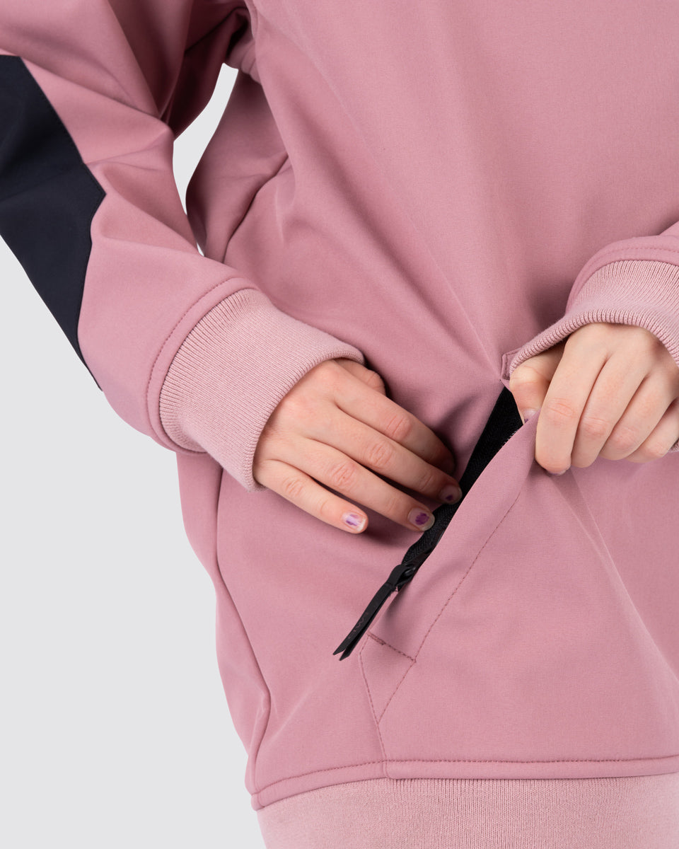 • Softshell-komfort med precis tillräckligt väderskydd för torra dagar eller parkåkning
