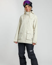 - Funktioner: Tejpade sömmar, ledade ärmar, avtagbar snökjol, fleecefodrad krage och fickor, ventilationsöppningar under armarna, justerbar huva och ärmslut